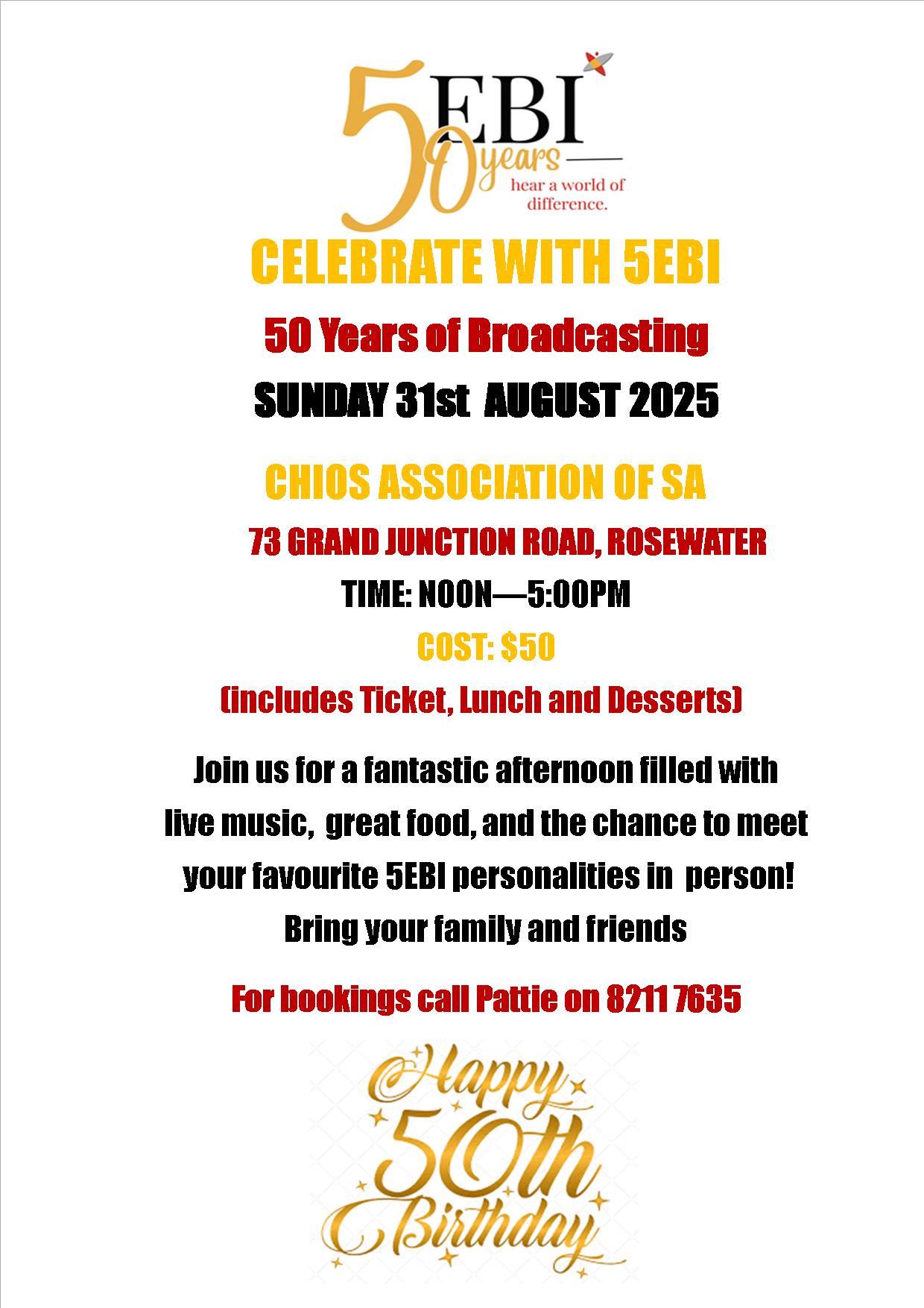 Join the 5EBI team for a fantastic afternoon celebrating our 50th Anniversary.